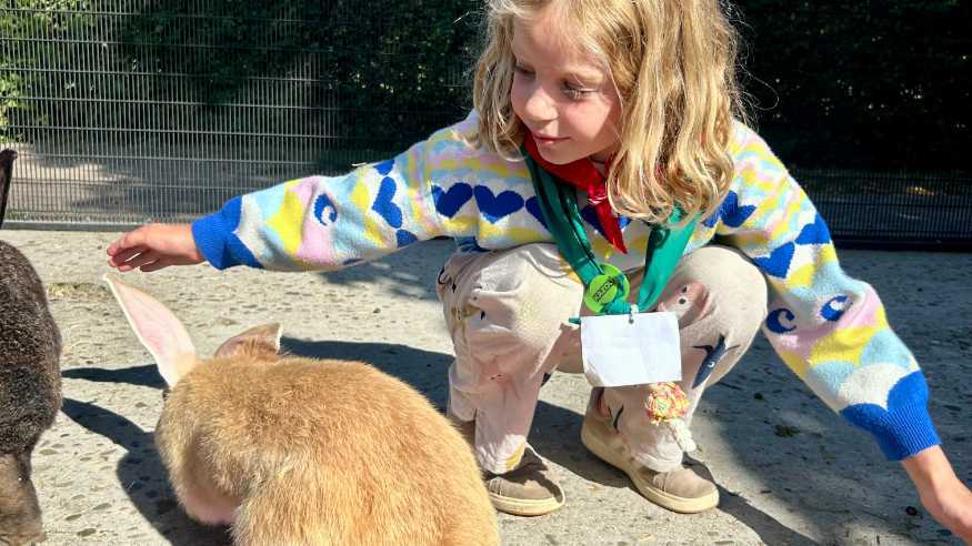 Op kinderboerderij 't Groenhof bij boerin Karin valt heel wat te beleven. Je voedert de dieren en dat zijn er een hele hoop: konijnen, geiten, eenden, schapen ... Het verzorgen van de dieren op de boerderij hoort er natuurlijk ook bij.